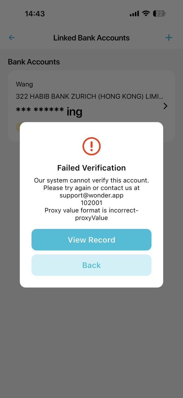 5 - You can edit or further submit information of your bank account if it cannot be verified automatically. To edit, from "Linked Bank Accounts" page, select the account to be verified, and "View Record".